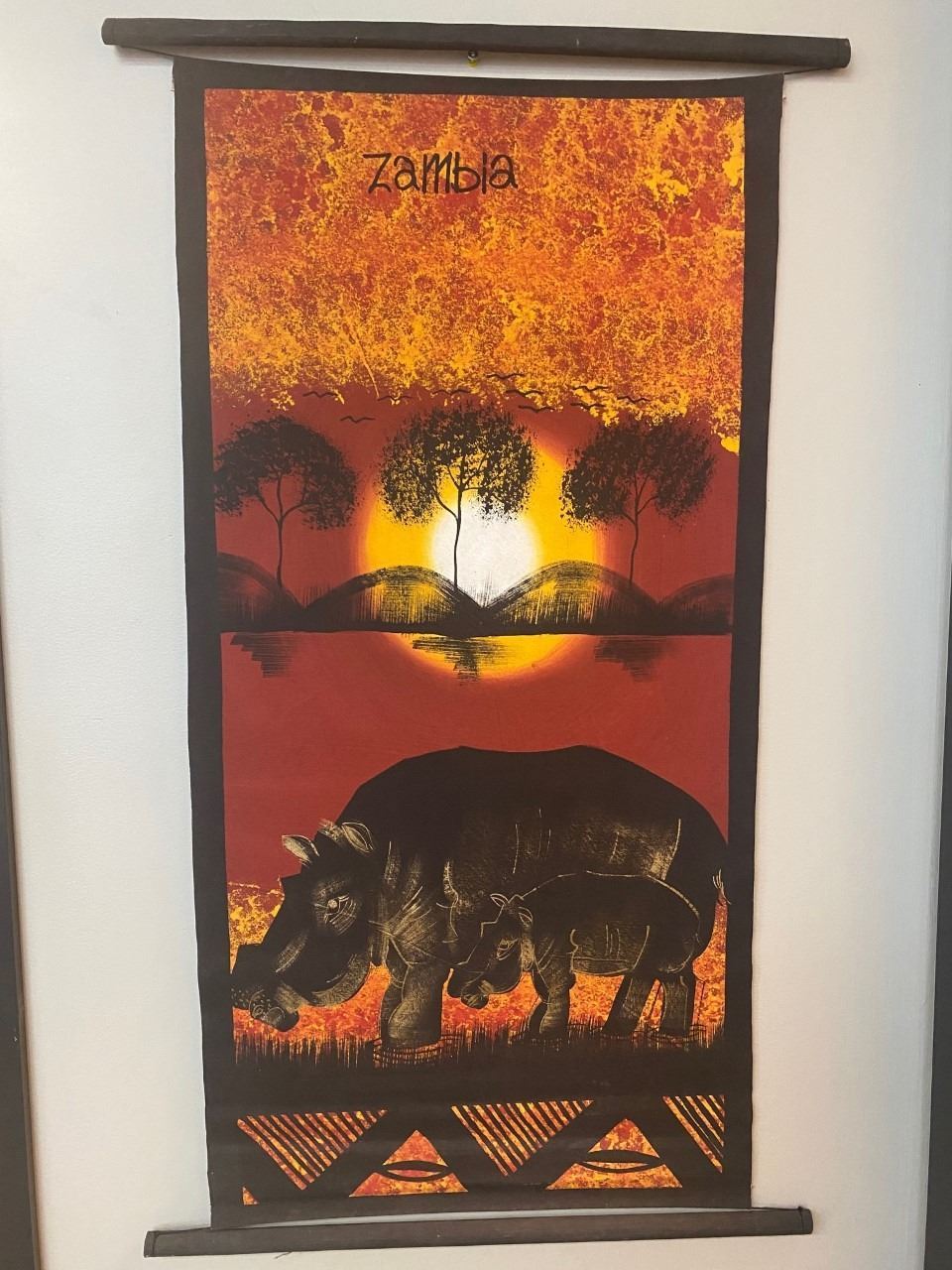 A beautiful addition to your home. This hand-painted canvas scroll has been brought to you from Zambia.