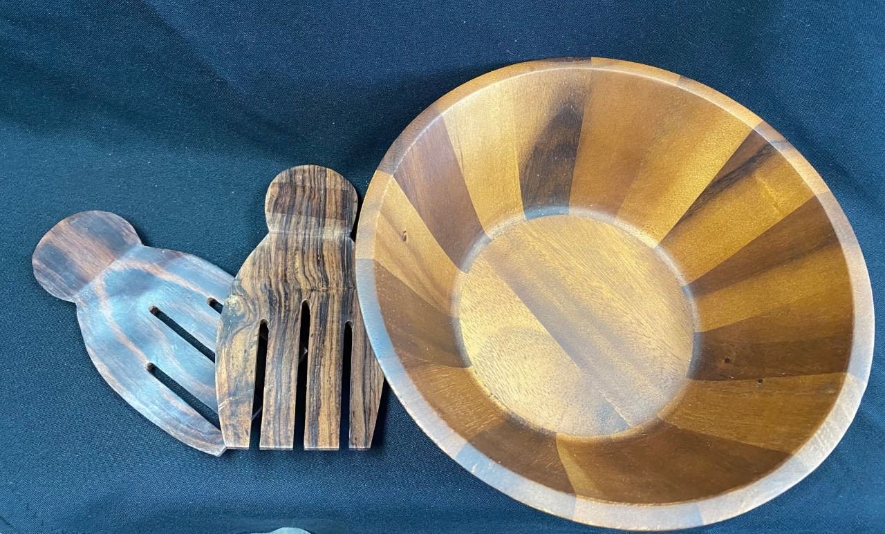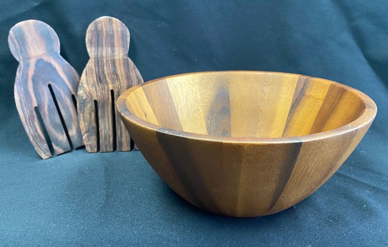 Dish up your favourite salad from this beautiful handcrafted wooden bowl using the accompanying salad serving forks.