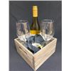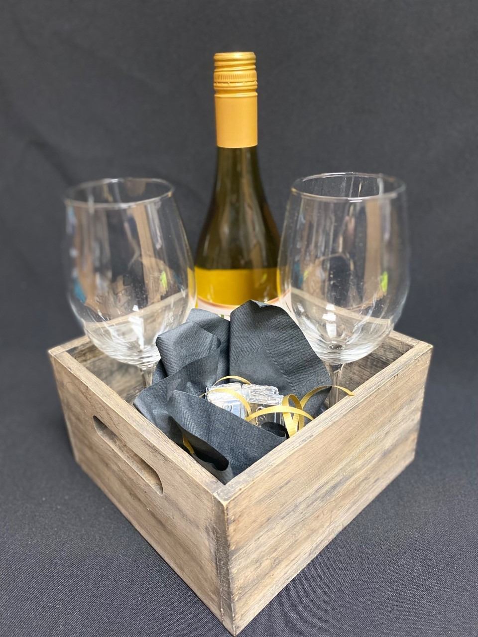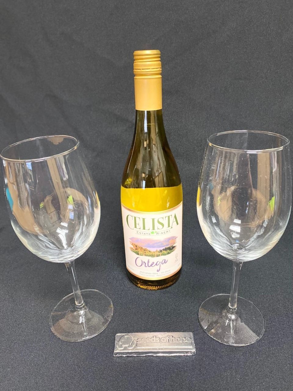 Serve your favourite bottle of Ortega (2021 White Wine) by Celista Estate Winery in this lovely, modern decorative serving crate. Comes with two wine glasses and six highly coveted Seeds of Hope milk chocolates.