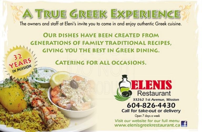 Donated by: Eleni's Greek Restaurant, 33262 1st Ave Mission, B.C.