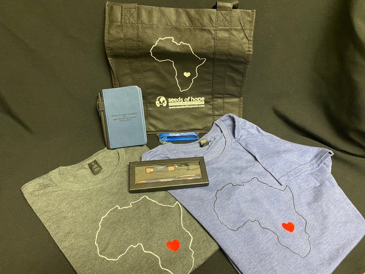 Show your support and open the door for conversations around Seeds of Hope and what we are doing to help those in need when you wear your complementing men's or women's t-shirt or shop carrying your Seeds of Hope market bag.