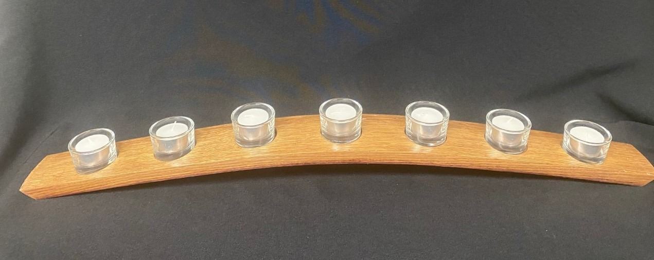 Includes 7 glass tealights and holders.